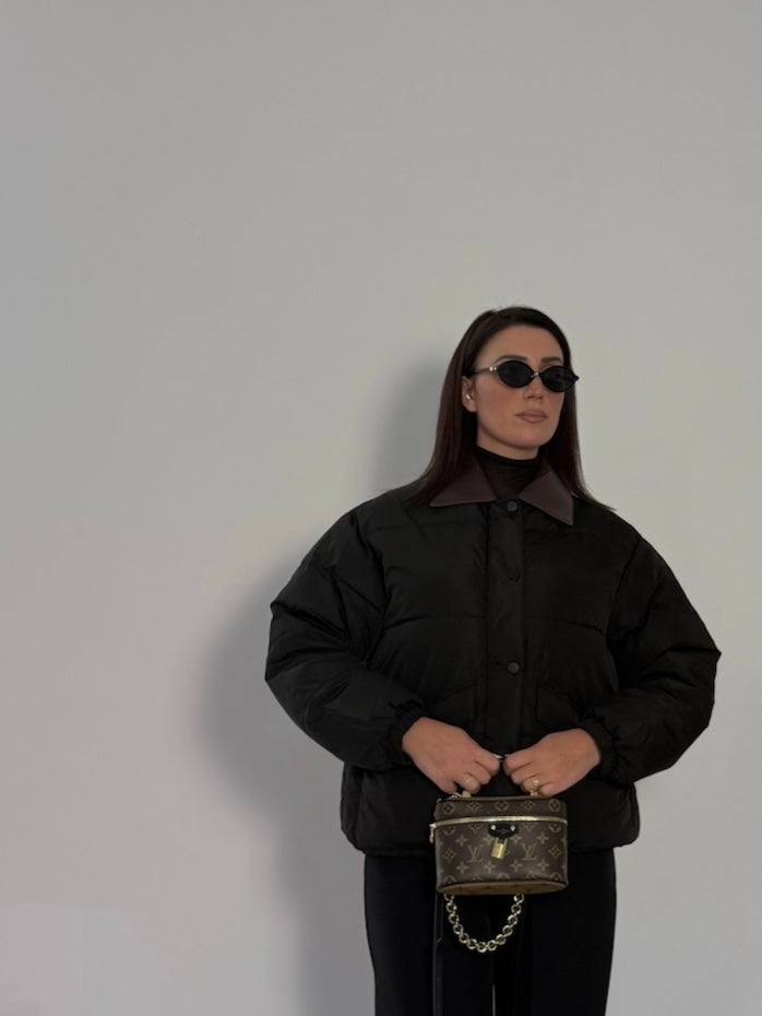 Giubbotto imbottito con colletto chiusura frontale con zip e bottoni Disponibile dalla S alla L La modella è...Prezzo regolare €55,00 EURPrezzo in offerta €55,00 EUR Prezzo regolarePrezzo unitario / per -