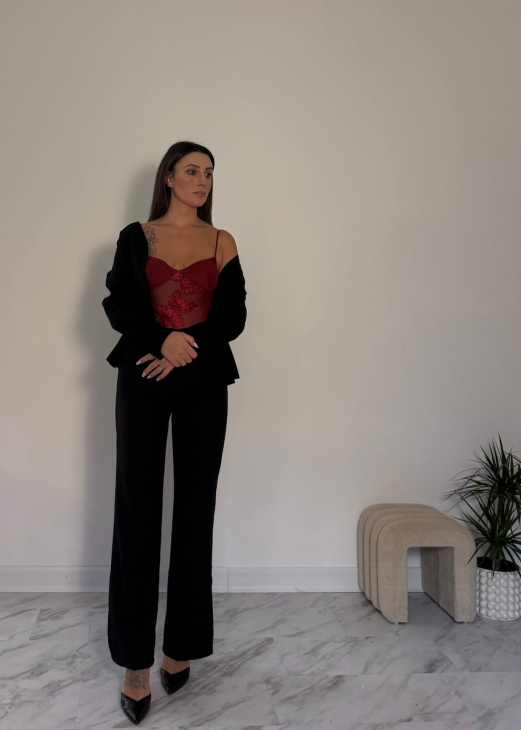 Body con trama fiorata semitrasparente.